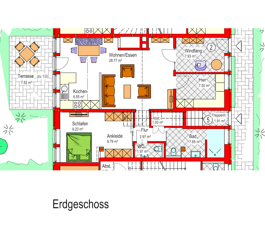 Die Erdgeschoss-Wohnung 2 kann optional mit der Dachgeschoss-Wohnung 5 kombiniert werden. So entsteht eine Wohnfläche von 151 m².