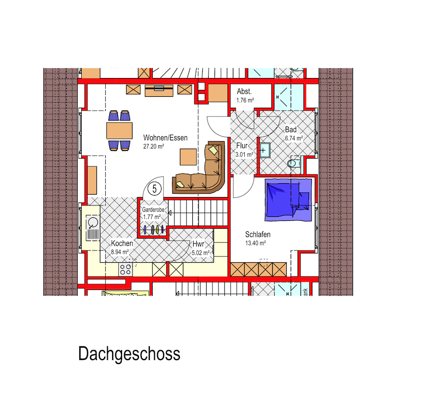 Die Dachgeschoss-Wohnung 5 kann optional mit der Erdgeschoss-Wohnung 2 kombiniert werden. So entsteht eine Wohnfläche von 151 m².