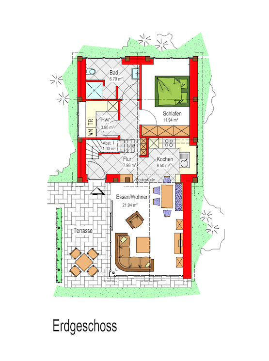Der Kotten birgt viel Charme der Vergangenheit und ist im Inneren überraschend modern gestaltet. Helle Räume, neue Türen, alte Eichen-Dielenböden, weiße Fenster mit Wärmeschutzisolierung, die Küche mit Cerankochfeld, Kühlschrank und Geschirrspüler, elegant gekacheltes Bad und Ausblick in die freie Natur. Die clever geschnittenen 2 Zimmer für Singles, Paare oder Familien mit ausgewählte Materialien und die gehobene Ausstattung lassen keine Wünsche offen. Die Kombination aus weißen Lehmputzwänden und Sichtbalken harmonisiert optimal. Der Kotten im Wohn- und Esszimmer durch die fehlende Decke als offener Wohnbereich.